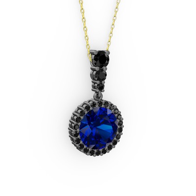 Lab safir ve siyah zirkon 925 ayar siyah rodyum kaplama gümüş kolye (40 cm altın rolo zincir)