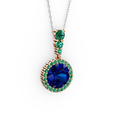 Lab safir ve yeşil kuvars 925 ayar rose altın kaplama gümüş kolye (40 cm beyaz altın rolo zincir)