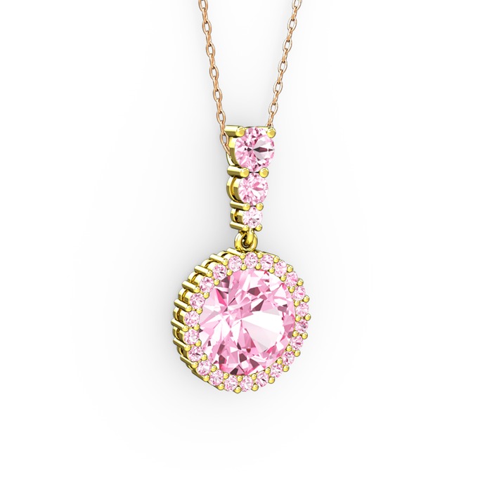 Pembe kuvars 14 ayar altın kolye (40 cm gümüş rolo zincir)