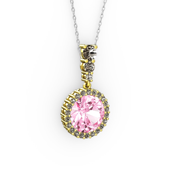 Pembe kuvars ve dumanlı kuvars 8 ayar altın kolye (40 cm beyaz altın rolo zincir)