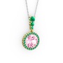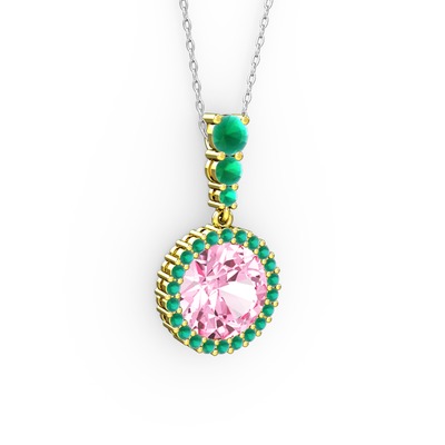 Pembe kuvars ve kök yakut 18 ayar altın kolye (40 cm gümüş rolo zincir)