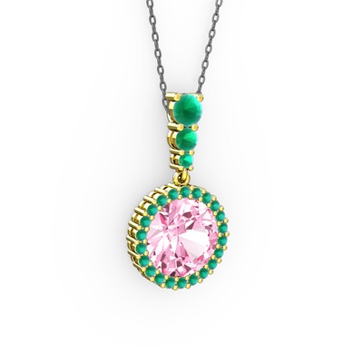Pembe kuvars ve kök yakut 8 ayar altın kolye (40 cm gümüş rolo zincir)