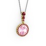 Pembe kuvars ve kök zümrüt 8 ayar altın kolye (40 cm gümüş rolo zincir)