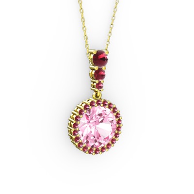 Pembe kuvars ve kök zümrüt 925 ayar altın kaplama gümüş kolye (40 cm altın rolo zincir)