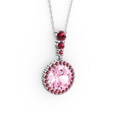 Pembe kuvars ve kök zümrüt 925 ayar gümüş kolye (40 cm beyaz altın rolo zincir)