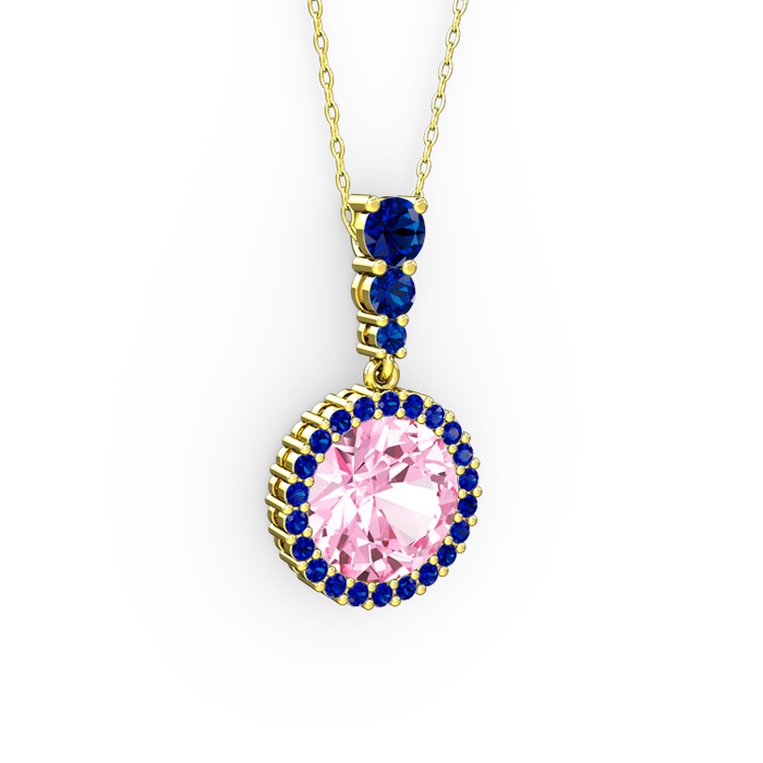 Pembe kuvars ve lab safir 8 ayar altın kolye (40 cm altın rolo zincir)