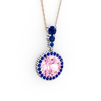 Pembe kuvars ve lab safir 925 ayar gümüş kolye (40 cm rose altın rolo zincir)