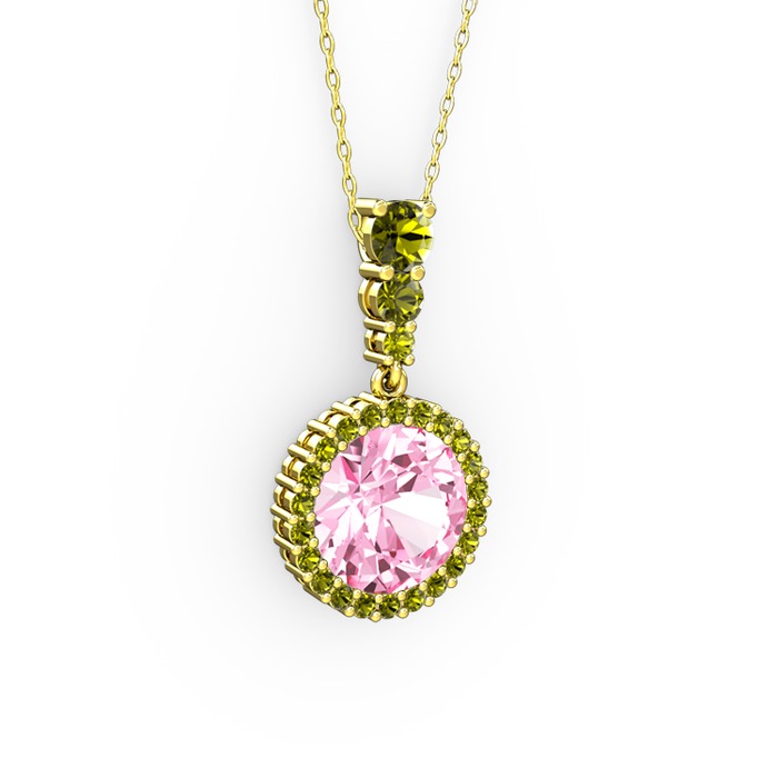 Pembe kuvars ve peridot 14 ayar altın kolye (40 cm altın rolo zincir)