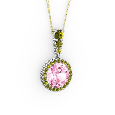 Pembe kuvars ve peridot 925 ayar gümüş kolye (40 cm altın rolo zincir)