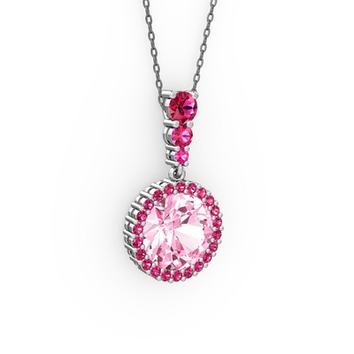 Pembe kuvars ve rodolit garnet 8 ayar beyaz altın kolye (40 cm gümüş rolo zincir)