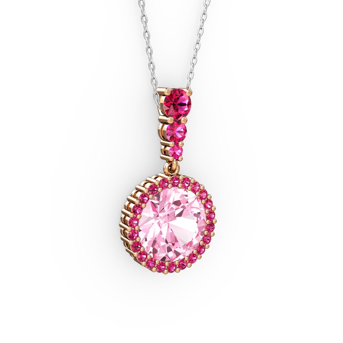 Pembe kuvars ve rodolit garnet 8 ayar rose altın kolye (40 cm beyaz altın rolo zincir)