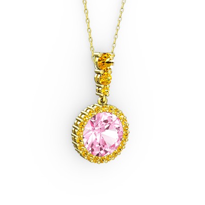 Pembe kuvars ve sitrin 18 ayar altın kolye (40 cm altın rolo zincir)