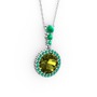 Peridot ve kök yakut 14 ayar beyaz altın kolye (40 cm beyaz altın rolo zincir)