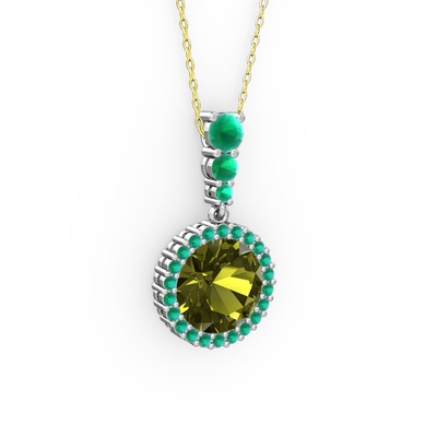 Peridot ve kök yakut 8 ayar beyaz altın kolye (40 cm altın rolo zincir)