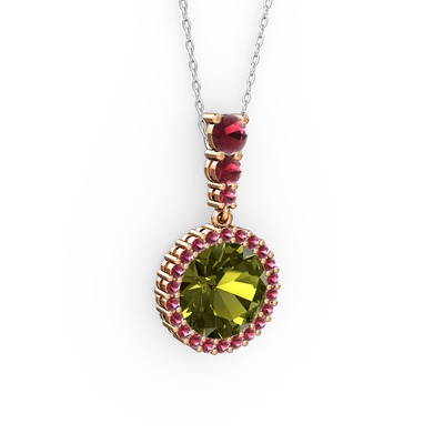 Peridot ve kök zümrüt 14 ayar rose altın kolye (40 cm beyaz altın rolo zincir)