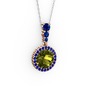 Peridot ve lab safir 18 ayar rose altın kolye (40 cm gümüş rolo zincir)