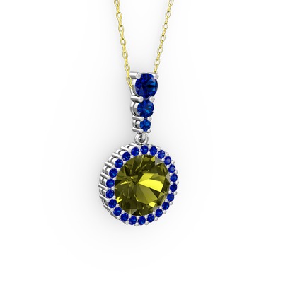 Peridot ve lab safir 8 ayar beyaz altın kolye (40 cm altın rolo zincir)
