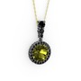Peridot ve siyah zirkon 925 ayar siyah rodyum kaplama gümüş kolye (40 cm altın rolo zincir)