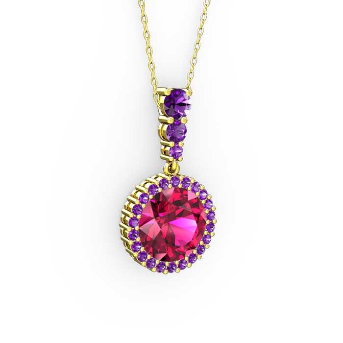Rodolit garnet ve ametist 8 ayar altın kolye (40 cm gümüş rolo zincir)