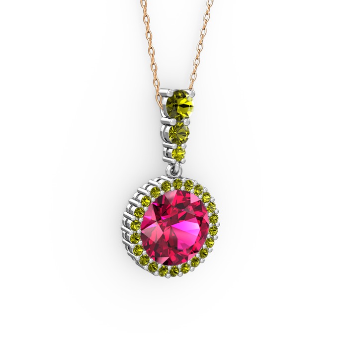 Rodolit garnet ve peridot 18 ayar beyaz altın kolye (40 cm rose altın rolo zincir)