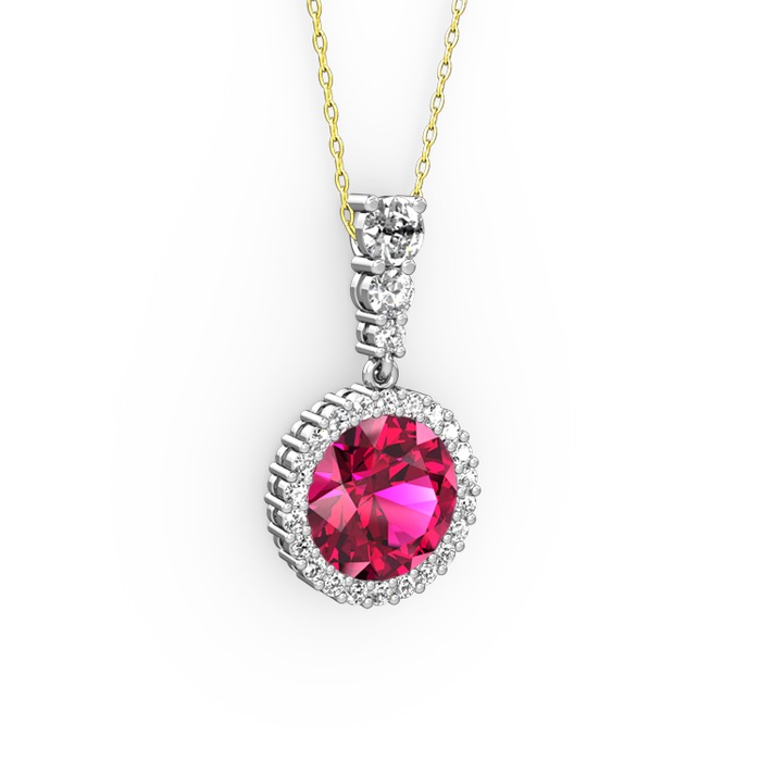 Rodolit garnet ve swarovski 8 ayar beyaz altın kolye (40 cm gümüş rolo zincir)