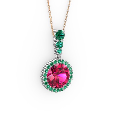 Rodolit garnet ve yeşil kuvars 8 ayar beyaz altın kolye (40 cm gümüş rolo zincir)