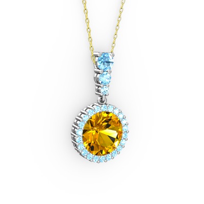 Sitrin ve akuamarin 8 ayar beyaz altın kolye (40 cm altın rolo zincir)