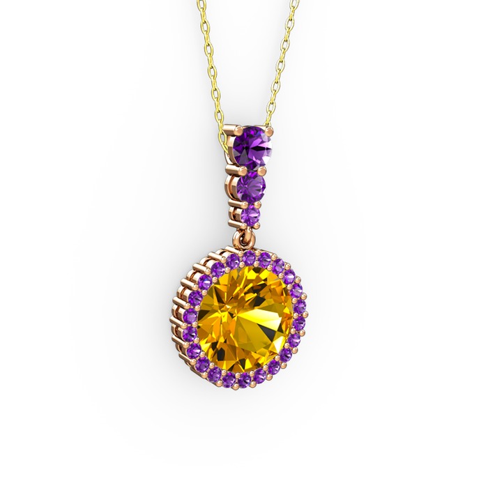 Sitrin ve ametist 14 ayar rose altın kolye (40 cm altın rolo zincir)