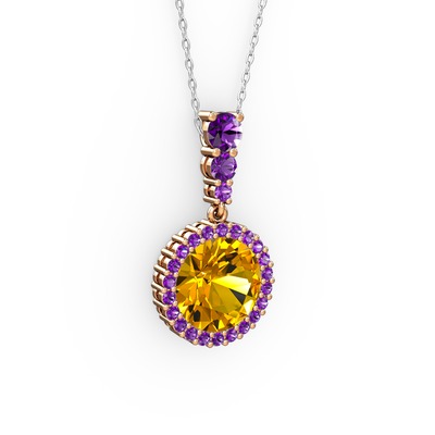 Sitrin ve ametist 18 ayar rose altın kolye (40 cm gümüş rolo zincir)