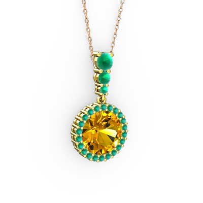 Sitrin ve kök yakut 8 ayar altın kolye (40 cm rose altın rolo zincir)