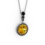 Sitrin ve siyah zirkon 18 ayar beyaz altın kolye (40 cm gümüş rolo zincir)
