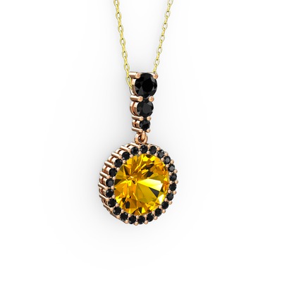 Sitrin ve siyah zirkon 8 ayar rose altın kolye (40 cm gümüş rolo zincir)