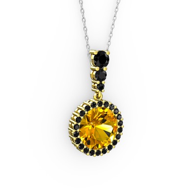 Sitrin ve siyah zirkon 925 ayar altın kaplama gümüş kolye (40 cm beyaz altın rolo zincir)