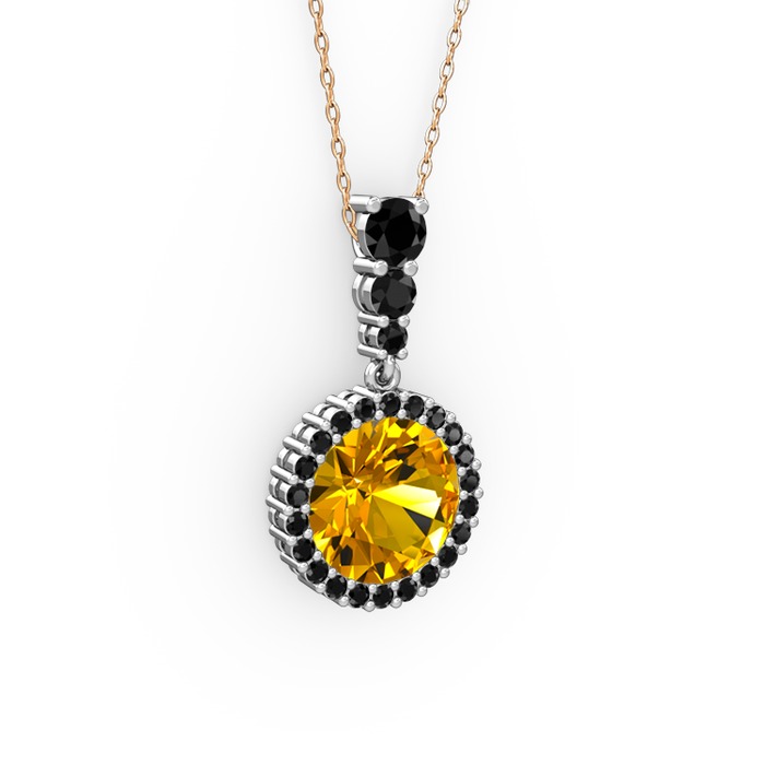 Sitrin ve siyah zirkon 925 ayar gümüş kolye (40 cm rose altın rolo zincir)