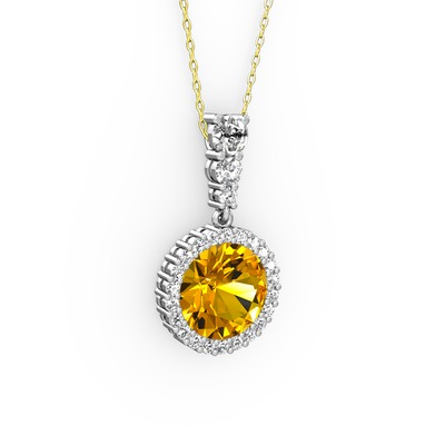 Sitrin ve swarovski 14 ayar beyaz altın kolye (40 cm altın rolo zincir)