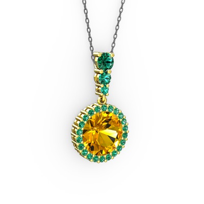 Sitrin ve yeşil kuvars 18 ayar altın kolye (40 cm gümüş rolo zincir)