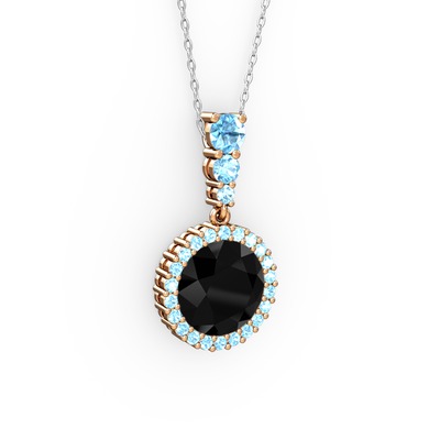 Siyah zirkon ve akuamarin 8 ayar rose altın kolye (40 cm beyaz altın rolo zincir)