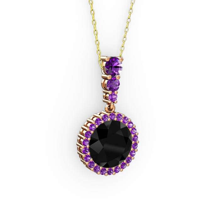 Siyah zirkon ve ametist 18 ayar rose altın kolye (40 cm gümüş rolo zincir)