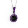 Siyah zirkon ve ametist 925 ayar siyah rodyum kaplama gümüş kolye (40 cm beyaz altın rolo zincir)