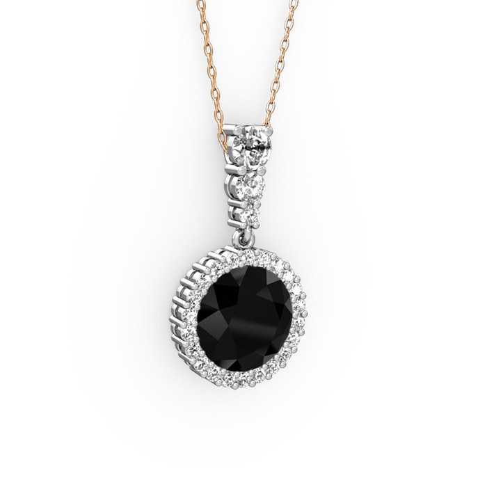 Siyah zirkon ve beyaz zirkon 18 ayar beyaz altın kolye (40 cm rose altın rolo zincir)