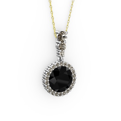 Siyah zirkon ve dumanlı kuvars 18 ayar beyaz altın kolye (40 cm altın rolo zincir)