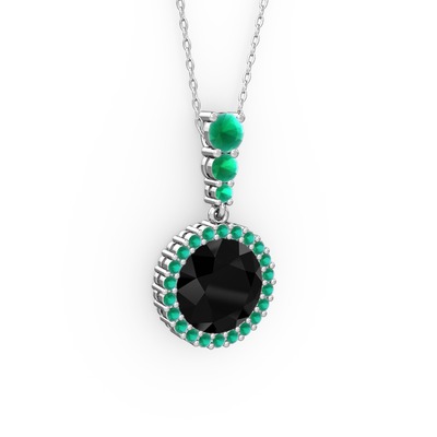 Siyah zirkon ve kök yakut 8 ayar beyaz altın kolye (40 cm gümüş rolo zincir)
