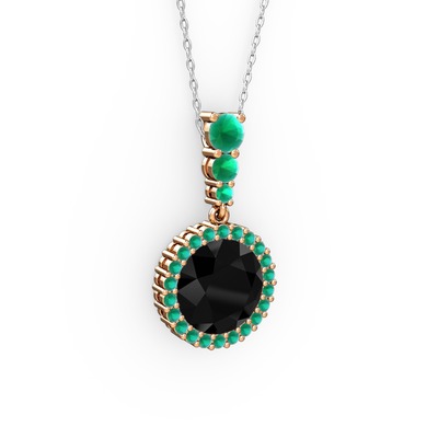 Siyah zirkon ve kök yakut 925 ayar rose altın kaplama gümüş kolye (40 cm beyaz altın rolo zincir)