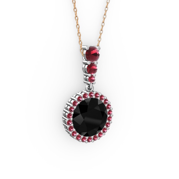 Siyah zirkon ve kök zümrüt 18 ayar beyaz altın kolye (40 cm rose altın rolo zincir)