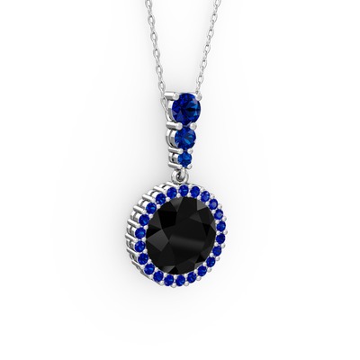 Siyah zirkon ve lab safir 8 ayar beyaz altın kolye (40 cm beyaz altın rolo zincir)