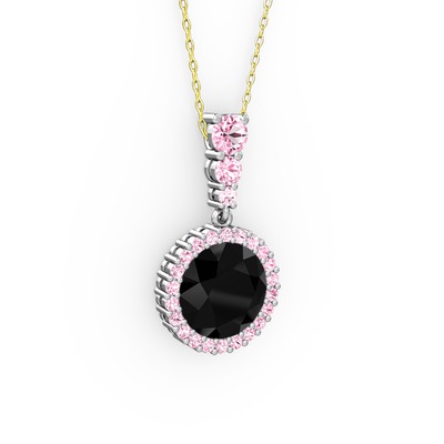 Siyah zirkon ve pembe kuvars 8 ayar beyaz altın kolye (40 cm altın rolo zincir)