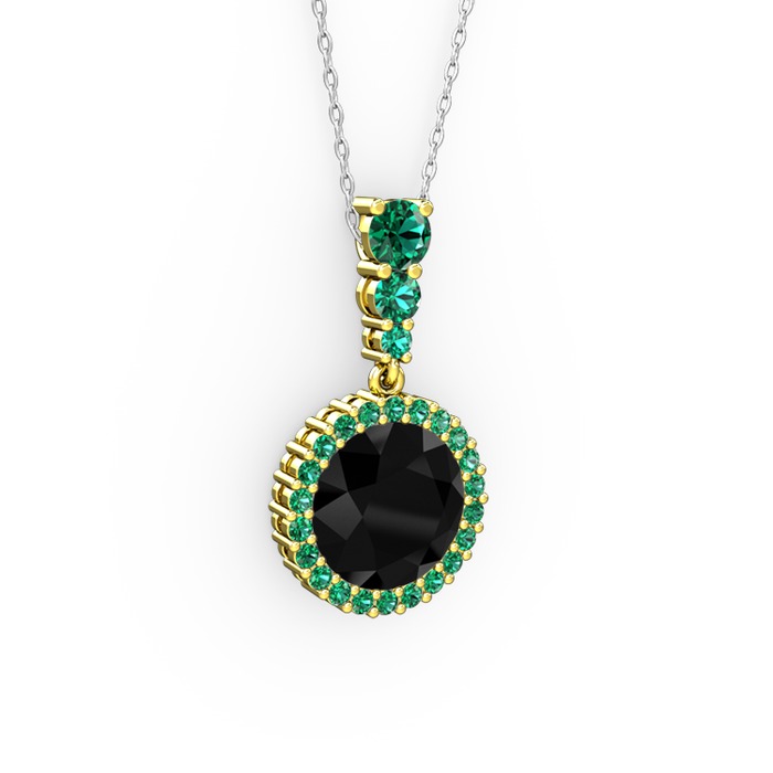 Siyah zirkon ve yeşil kuvars 14 ayar altın kolye (40 cm beyaz altın rolo zincir)