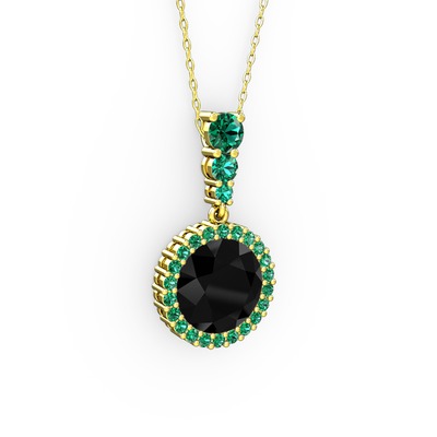 Siyah zirkon ve yeşil kuvars 8 ayar altın kolye (40 cm gümüş rolo zincir)