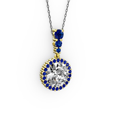 Swarovski ve lab safir 8 ayar altın kolye (40 cm gümüş rolo zincir)