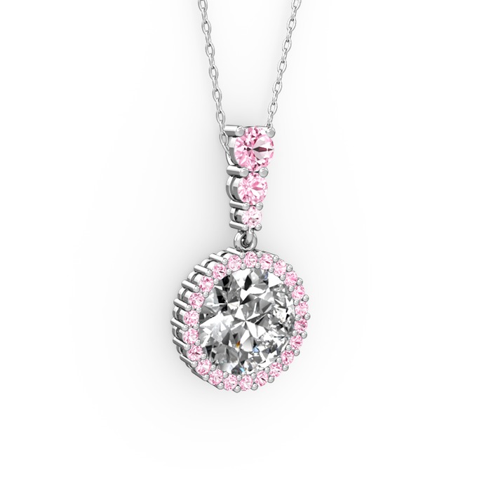 Swarovski ve pembe kuvars 18 ayar beyaz altın kolye (40 cm beyaz altın rolo zincir)